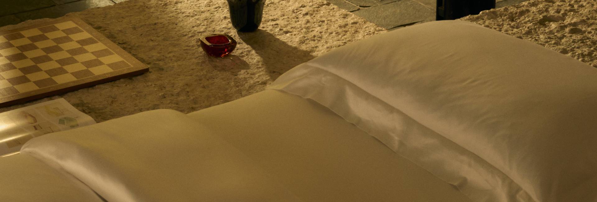 تجربة فريتي الفاخرة. منسوجة في إيطاليا من قطن طويل التيلة، يجمع الساتان الفائق بين خيوط فائقة النعومة ولمعان متألق ومتانة فائقة.