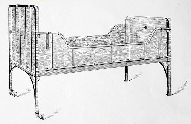 On behalf of the Amsterdam Burgerziekenhuis, Johannes Auping improves the first bed that he had designed for the St Geertruiden Gasthuis in Deventer: Hospital bed No. 17. It consists of removable wooden plates and steel. Both the wooden and steel parts can be delivered in different colors. It is the first bed with an Auping mesh base